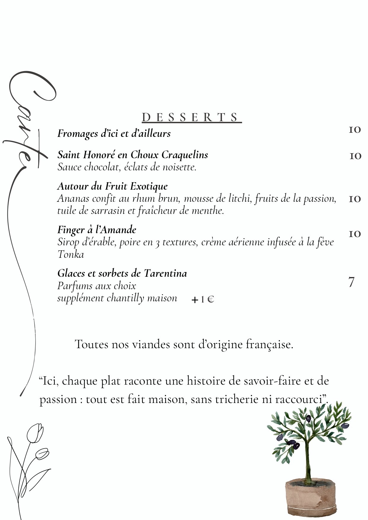 - Un dîner dans notre restaurant bistronomique (entrée, plat, et dessert),